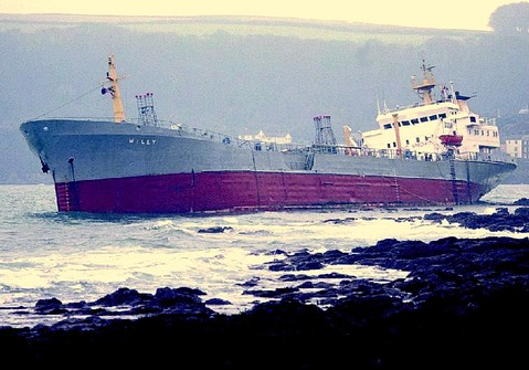 The 'Kodima' Just 20 days after the 'Willy' was towed away, the 'Kodima' came to settle, bows-on under the ranges at Tregantle in Whitsand Bay. Click below for the abridged official report, with images of the stranding and subsequent events.