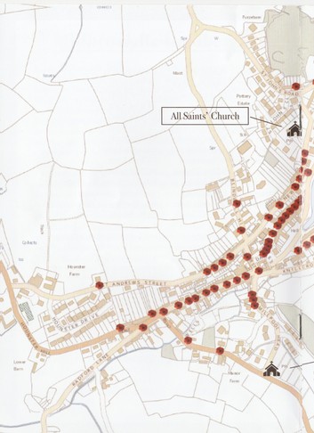 Thanks to a generous donation from the Mendennick Solar Farm Fund a pamphlet was published which gave dramatic testimony to the full extent of the sacrifice made and the village map marked with sixty one poppies on house locations cannot fail to evoke many emotions associated with death, war and community.